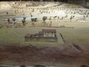 كان الطابق الأول بنفس حجم الطابق الأرضي، على الرغم من وجود نافذة مركزية واحدة فقط في الجدران الطويلة مع لوحة جدارية على كل جانب. كان الجدار الأيمن عند الدخول يحتوي على لوحة أسموديا الأقرب إلى المدخل مع الحج إلى نافورة سان إيسيدرو خلف النافذة. على اليسار كانت أتروپوس وقتال بالهراوات على التوالي. على الجدار القصير في الخلف كان من الممكن رؤية رجل تسخر منه امرأتان على اليمين ورجال يقرأون على اليسار. على يمين الباب كانت لوحة الكلب وعلى اليسار رؤوس في منظر طبيعي.