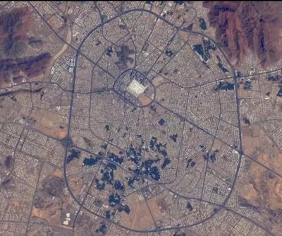 المدينة المنورة في صورة ساتلية، التقطها رائد الفضاء البريطاني، تيم پيك، 2017