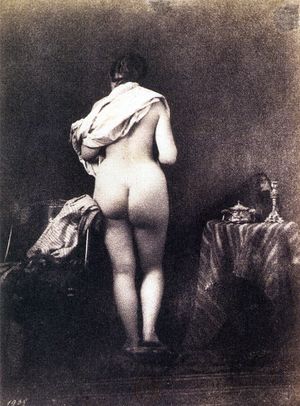 Étude d'après nature, nu no. 1935 (1853) by Julien Vallou de Villeneuve - the photograph inspired the central figure in Courbet's work[3].