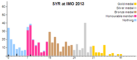 وحصلت سوريا على 14 نقطة، وجاءت في الترتيب ال88 على قائمة الدول المشاركة في اولمپياد 2013.