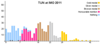 حصل الفريق التونسي على إجمالي 47 نقطة، وعلى ترتيب 77، وحصل على مدالية برونزية للمتسابق محمد سليم كمون وحصل الشاذلي خماخم على تمثيل مشرف.