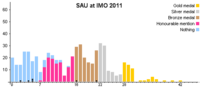 كان ترتيب الفريق السعودي رقم 70، وحصل على 53 نقطة، ومداليتان برونزيتان.