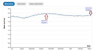 في 4 مارس 2023 وصل منسوب بحيرة ناصر لقرابة (180.88) فوق سطح البحر وذلك انخفاض قدره (1.0 متر فقط) عن ما كان عليه يوم 16 أكتوبر 2022 حيث كانت البحيرة في أعلى منسوب ممكن بالقرب من (182)، وهذا إن كان يدل على شيء فهو يدل على أن وزارة الري تنفذ مخطط (تقشفي) شديد وأنها تقريبا تسمح بتصريف التدفق اليومي الذي يصل إليها من روافد النيل المختلفة دون أي سحب (ملحوظ) من بحيرة ناصر، وهذا أمر جيد جدا في هذا التوقيت بهدف الحفاظ على كل نقطة مياه ممكنة بالبحيرة لمواجهة (تابعيات الملء الرابع).