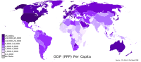 أرقام عام 2007 من CIA World Factbook للإجماليين، ن.م.إ. GDP الإسمي (أعلى) مقارن مع ن.م.إ. المعدَّل حسب ت.ق.ش. PPP (أسفل).