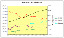 {{cite web}}: Missing or empty|title=(help) - ^ "Tabell 0 Hele landet. Folkemengde 1. januar og endringer i året. 1951" (in Norwegian). Statistics Norway. Retrieved 27 January 20107.