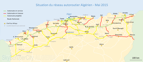 تم الانتهاء من إنجاز الطريق السيار شرق-غرب Autoroute بطول 1720 كم (مع الطرق الجانبية والمنشآت الفنية)، هو مشروع طريق سيار في الجزائر أو ما يسمى بمشروع القرن، والذي يربط بين الحدود المغربية والحدود التونسية مروراً بالمدن الجزائرية الكبرى مثل (من الغرب إلى الشرق) تلمسان ووهران وغليزان والشلف والجزائر العاصمة وسطيف وقسنطينة وسكيكدة وعنابة والحجار و الطارف. وهو يعد من شبكة الطرق السيارة المغاربية.