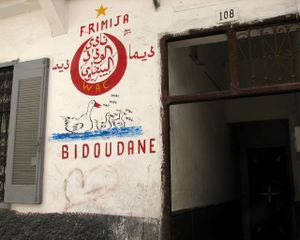 شعار الوداد على أحد جدران منزل في المدينة القديمة للدار البيضاء وهو الحي الذي عرف ميلاد النادي