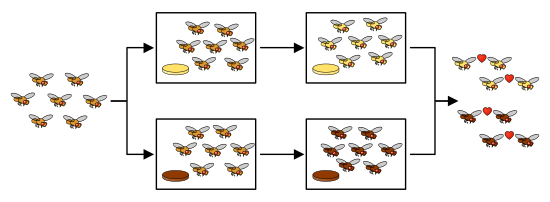 Reproductive isolation mechanisms can be a consequence of allopatric speciation. A population of Drosophila was divided into sub populations that were selected to adapt to different food types. After a number of generations the two sub populations were mixed again. It was observed that the subsequent matings occurred between individuals belonging to the same adapted group.[3]