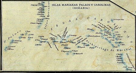 The country was originally settled approximately 3,000 years BP by migrants from Maritime Southeast Asia.[9][10] Palau was first drawn on a European map by the Bohemian missionary Paul Klein[11] based on a description given by a group of Palauans shipwrecked on the Philippine coast on Samar. Palau islands were made part of the Spanish East Indies in 1885. Following Spain's defeat in the Spanish–American War in 1898, the islands were sold to Germany in 1899 under the terms of the German–Spanish Treaty, where they were administered as part of German New Guinea.