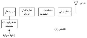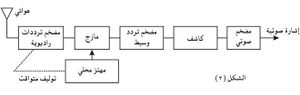 يعد المستقبِل أكثر الأجزاء حرجاً في نظام البث الإذاعي، فمع وجود آلاف المحطات المرسِلة في العالم العاملة على أنماط متنوعة كالبث الإذاعي AM والبث الإذاعي FM والبث التلفزيوني وأنظمة الاتصالات الراديوية العسكرية منها والمدنية، وعلى حزم ترددية متنوعة، وبمستويات استطاعة إرسال عديدة، فإن المستقبِل يواجه مهمته في انتقاء الإشارة المطلوبة ورفض كل الإشارات الأُخرى. ومما لاشك فيه أن التطور المذهل في الإلكترونيات كاستبدال الترانزيستورات[ر] بالأنابيب الإلكترونية[ر]، وتقانات الدارات التكاملية وغيرها، قد أسهم في تحسين أداء المستقبلات وفي خفض حجمها ووزنها وكلفتها، إلى جانب التطورات المذهلة التي رافقت الثورة الرقمية والتي تسمح اليوم بالحصول على أداء متميز جداً وجودة صوت تضاهي جودة الأقراص الليزرية. ولعل أكثر البنيات شيوعاً في المستقبلات هي المسماة المستقبل السوبرهيتروديني superheterodyne. ويبين الشكل 3 المخطط الصندوقي المبسط لهذا النوع من المستقبلات، وفيه يجرى تضخيم أولي للإشارة المستقبَلة عبر الهوائي التي تمزج بالخرج الجيبي لمهتز محلي. ويكون خرج دارة المازج عادة مولفاً على الفرق بين ترددي المهتز والإشارة الداخلة، ويُحافظ دوماً على تردد الفرق ذاته الذي يسمى التردد الوسيط intermediate، ويطلق على الدارات التي تضخم هذا التردد اسم مضخمات التردد الوسيط. ومن ثَم تُرسل الإشارة إلى كاشف التعديل للحصول على الإشارة بالحزمة القاعدية التي تُضَخَّم بوساطة مضخم ترددات صوتية (AF) Audio frequency للحصول على مستوى الخرج المطلوب.
