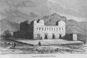 Archaeological excavations[46] indicate that the Tiwanaku peoples (around 650–1000 AD) built a major temple on the Island of the Moon. Pottery vessels of local dignitaries dating from this period have been excavated on islands in Lake Titicaca. Two of them were found in the 19th century and are now in the British Museum in London.[47] The structures seen on the island today were built by the Inca (circa 1450–1532) directly over the earlier Tiwanaku ones.
