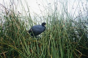 The lake holds large populations of water birds and was designated as a Ramsar Site on August 26, 1998. It has also been designated an Important Bird Area (IBA), in both Bolivia and Peru, by BirdLife International because it supports significant populations of many bird species.[25][26] Several threatened species such as the huge Titicaca water frog and the flightless Titicaca grebe are largely or entirely restricted to the lake.[23][27]