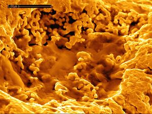 C. metallidurans plays a vital role, together with Delftia acidovorans, in the formation of gold nuggets. It precipitates metallic gold from a solution of gold(III) chloride, a compound highly toxic to most other microorganisms.[5][6][7]