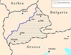 الأراضي المتنازَل عنها إلى يوغسلاڤيا من بلغاريا حسب Treaty of Neuilly، 1920.