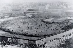 Ruth pitching for the Red Sox in 1914, at Comiskey Park in Chicago