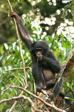 ويعد البونوب من الأصناف المهددة بالانقراض ويوجد طليقاً فقط في جمهورية الكونغو الديمقراطية. ومع الشمپانزي الشائع، يـُعد البونوبو أقرب extant قرباً للبشر. ولما كان النوعين ليسوا سباحين مهرة، فمن الممكن أن تشكل نهر الكونغو منذ 1.5–2مليون سنة مضت أدى إلى ظهور نوع البونوبو. ويعيشوا جنوب النهر، وهناك انفصلوا عن أجداد الشمپانزي الشائع، الذي يعيش شمال النهر.[5]