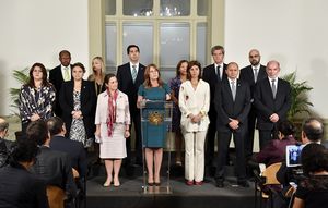 The Peruvian government is directly elected, and voting is compulsory for all citizens aged 18 to 70.[35] Congress is currently composed of Fuerza Popular (59 seats), Peruanos Por el Kambio (17 seats), Frente Amplio (10 seats), New Peru (10 seats), Alianza para el Progreso (9 seats), Acción Popular (5 seats) and APRA (5 seats) and 18 not grouped.[36]