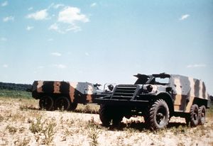 | التعليق | wheeled 6×6 front - 2 leaf springs and hydraulic shock absorbers. rear - equalising type with 2 leaf springs and torsion bars. |