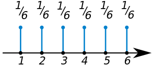 When there is a natural order among the potential outcomes , it may be convenient to assign numerical values to them (or n-tuples in case of a discrete multivariate random variable) and to consider also values not in the image of . That is, may be defined for all real numbers and for all as shown in the figure.
