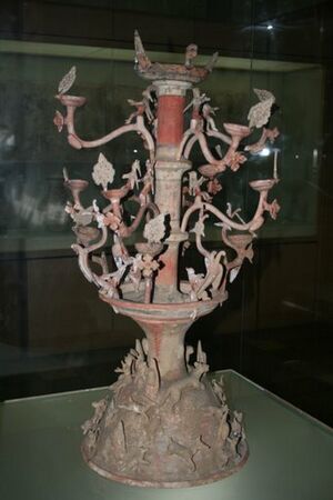 To the south, Emperor Wu assisted King Zhao Mo in fending off an attack by Minyue (in modern Fujian) in 135 BCE.[119] After a pro-Han faction was overthrown at the court of Nanyue, Han naval forces conquered Nanyue in 111 BCE during the Han–Nanyue War, bringing areas of modern Guangdong, Guangxi, Hainan Island, and northern Vietnam under Han control.[120] Emperor Wu also launched an invasion into the Dian Kingdom of Yunnan in 109 BCE, subjugating its king as a tributary vassal, while later Dian rebellions in 86 BCE and 83 BCE, 14 CE (during Wang Mang's rule), and 42–45 CE were quelled by Han forces.[121] Wu sent an expedition into what is now North Korea in 128 BCE, but this was abandoned two years later.[122] In 108 BCE, another expedition against Gojoseon in northern Korea established four commanderies there, only two of which (i.e. Xuantu Commandery and Lelang Commandery) remained after 82 BCE.[123] Although there was some violent resistance in 108 BCE and irregular raids by Goguryeo and Buyeo afterwards, Chinese settlers conducted peaceful trade relations with native Koreans who lived largely independent of (but were culturally influenced by) the sparse Han settlements.[124]