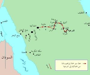 وشعرت الدولة العثمانية بخطورة تلك الحركة، وأدركت أن نجاحها سوف يؤدي إلى فصل الحجاز وخروجه من يدها، وبالتالي خروج الحرمين الشريفين من سلطتها ، ما يفقدها الزعامة التي تتمتع بها في العالم الإسلامي بحكم إشرافها على الحرمين الشريفين ، في وقت كانت قد بدأت تسعى فيه إلى التغلب على عوامل الضعف الداخلية، وتقوية الصلات بينها وبين أنحاء العالم الإسلامي بوصفها مركز الخلافة الإسلامية.[32] شكّلت كل هذه العوامل حافزًا للدولة العثمانية للوقوف في وجه الدعوة الوهّابية ومواجهتها للحد من انتشارها، فحاولت في بادئ الأمر عن طريق ولاة الدولة العثمانية في بغداد ودمشق لكنها فشلت،[33] فوقع اختيارها على محمد علي باشا، فأعدّ هذا حملة عسكرية عثمانية بقيادة ابنه أحمد طوسون دخلت ينبع وبدر، إلا أنها انهزمت في معركة وادي الصفراء.[34] لم يستثمر الوهّابيون انتصارهم في الصفراء، وقبعوا في معاقلهم، ما أعطى طوسون الفرصة لإعادة تنظيم صفوف قواته، كما طلب إمدادات من القاهرة، وأخذ يستميل القبائل العربية الضاربة بين ينبع والمدينة المنورة بالمال والهدايا، ونجح في سياسته هذه التي مهّدت له السبيل لاستعادة المدينة المنورة ومكة والطائف،[34] لكن الوهّابيين عادوا وانتصروا في تَرَبة والحناكية وقطعوا طرق المواصلات بين مكة والمدينة،[35] وانتشرت الأمراض في صفوف الجيش العثماني، وأصاب الجنود الإعياء نتيجة شدة القيظ وقلة المؤونة والماء،[36] ما زاد موقف طوسون حرجًا، فرأى بعد تلك الخسائر، أن يلزم خطة الدفاع، وأرسل إلى والده يطلب المساعدة.[36]