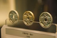 طائر الشمس الذهبي، رقاقة على شكل حلقة، مصنوعة بشكل شبه كامل من ذهب نقي. أواخر ثقافة سان‌شينگ‌دوي (فترة شانگ).
