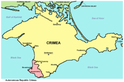 Wydra, Doris (November 11, 2004). "The Crimea Conundrum: The Tug of War Between Russia and Ukraine on the Questions of Autonomy and Self-Determination". Retrieved March 25, 2007.[dead link] - ^ Eastern Europe, Russia and Central Asia 2004, Routledge, 2003, ISBN 1857431871 (page 540)