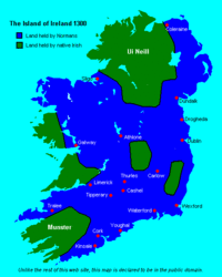 مدى السيطرة النورمانية على أيرلندة في 1300.