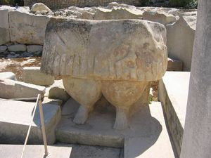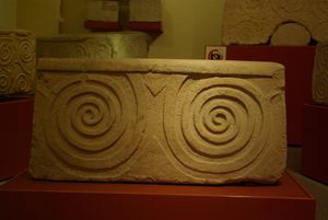 After the Temple period came the Bronze Age. From this period there are remains of a number of settlements and villages, as well as dolmens — altar-like structures made out of very large slabs of stone. They are claimed to belong to a population certainly different from that which built the previous megalithic temples. It is presumed the population arrived from Sicily because of the similarity to the constructions found in the largest island of the Mediterranean sea.[1] One surviving menhir, which was used to build temples, still stands at Kirkop; it is one of the few still in good condition. Among the most interesting and mysterious remnants of this era are the so-called cart ruts as they can be seen at a place on Malta called Clapham Junction. These are pairs of parallel channels cut into the surface of the rock, and extending for considerable distances, often in an exactly straight line. Their exact use is unknown. One suggestion is that beasts of burden used to pull carts along, and these channels would guide the carts and prevent the animals from straying. The society that built these structures eventually died out or at any rate disappeared.