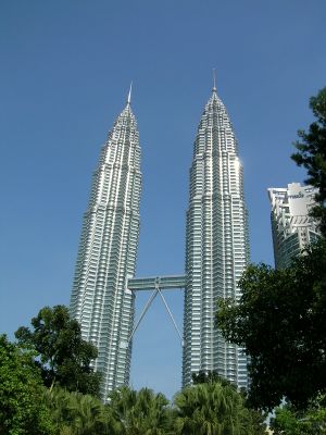 برجا پتروناس التوأم، كوالا لمپور، أعلى بناء في جنوب شرق آسيا.