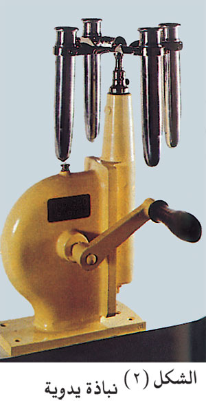 ز ـ التنبيذ centrifugation أو التثفيل: وهو تقنية فصل مكونات خليطٍ أو معلقٍ من مواد متماثلة الكثافات تماثلاً متقارباً جداً موضوعٍ في حجيرة تدور بسرعة عالية جداً (الشكل -2) فتنشأ عن ذلك قوة نابذة يمكن أن تبلغ 17000 مِثْلٍ من قوة الجاذبية الأرضية، وبذلك تُنْبَذُ المواد الأعلى كثافة إلى الجزء الخارجي من الحجيرة الدوارة في حين تتركز المواد الأدنى كثافة عند الجزء الداخلي أو قربه. وتستعمل هذه التقنية استعمالاً ناجعاً في عددٍ من العمليات البيولوجية والصناعية، كفصل مكونات الدم وتركيز لثى المطاط ودقائق الدسم من مكونات الحليب الأخرى، وإغناء اليورانيوم بالنظير الفعال.