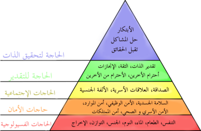 تتدرج الحاجات حسب أهميتها في شكل هرمي ويتكون هذا الهرم من :