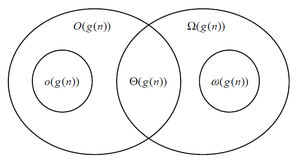 | (Note that papers in number theory have been increasingly and widely using this same notation, since the beginning of the 20th century, in the weaker sense that f = o(g) is false) | Big Omega | is bounded below by (up to constant factor) asymptotically | for some k | |