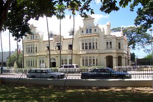 In the 1530s Antonio de Sedeño, a Spanish soldier intent on conquering the island of Trinidad, landed on its southwest coast with a small army of men, intending to subdue the Indigenous population of the island. Sedeño and his men fought the native peoples on many occasions, and subsequently built a fort. The next few decades were generally spent in warfare with the native peoples, until in 1592, the "Cacique" (native chief) Wannawanare (also known as Guanaguanare) granted the area around modern Saint Joseph to Domingo de Vera e Ibargüen, and withdrew to another part of the island.[19] The settlement of San José de Oruña was later established by Antonio de Berrío on this land in 1592.[11][22] Shortly thereafter the English sailor Sir Walter Raleigh arrived in Trinidad on 22 March 1595 in search of the long-rumoured "El Dorado" ("City of Gold") supposedly located in South America.[22] He attacked San José, captured and interrogated Antonio de Berrío, and obtained much information from him and from the Cacique Topiawari; Raleigh then went on his way, and Spanish authority was restored.[26]