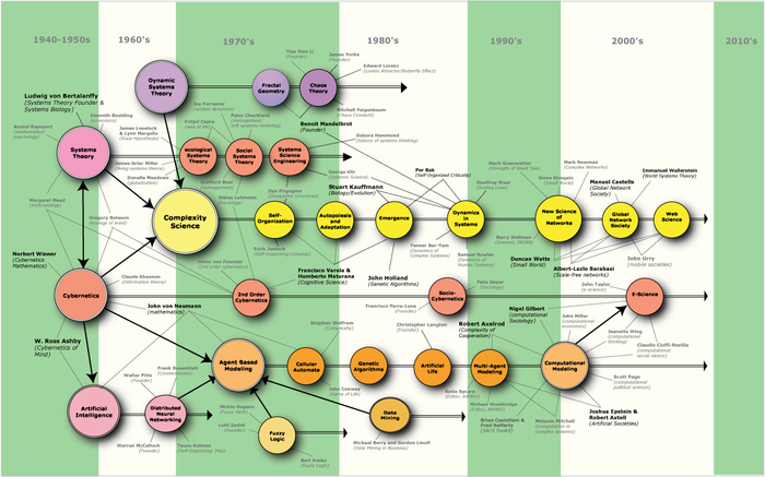 Map of Complexity Science. The web version of this map provides internet links to many of the leading scholars and areas of research in complexity science.