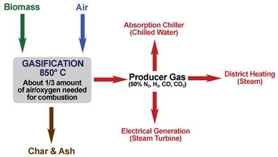 يسحق الفحم ليتم بعده تسخين المسحوق بواسطة بخار ساخن بطريقة تشبه تسخين حبات الذرة لعمل البوشار، ثم تتسبب الحرارة المنتشرة بحدوث تفاعلات كيميائية ينتج عنها إطلاق الغازات الأساسية من جزيئات الفحم وبشكل أساسي الهيدروجين وأول أكسيد الكربون القابلان للاستخدام لتوليد الكهرباء في خلايا الأكسدة الصلبة.[4]