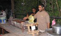 يغز اللحم المتبل والمملح في أسياخ معدنية ويوضع بينها بعض البصلات الصغيرة وحبات الطماطم الصغيرة وقطع من اللية (ألية الخروف) وتوضع فوق الفحم المتقد إلى ان تستوي.