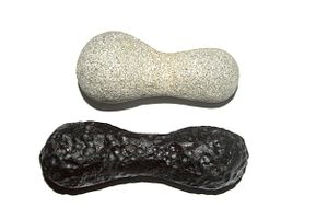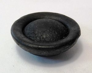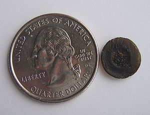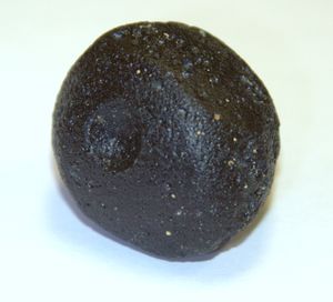 Aerodynamically shaped Australite; the button shape caused by ablation of molten glass in the atmosphere.