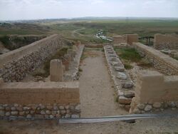 Tel Beer-sheba, the site of the Iron Age city, is located on a hill overlooking the Wadi Beer-sheba about two and a half miles east of the modern city of Beersheba. The site was excavated from 1969 to 1976 by the Tel Aviv University Institute of Archaeology, directed by Prof. Yohanan Aharoni, except for the last season which was led by Prof. Ze'ev Herzog. Most of the dig was devoted to uncovering the large fortified Israelite city. The biblical narrative places the city in the time of the United Monarchy of King David, whose reign is dated by biblical scholars to around 1000 BCE, and later, to the Kingdom of Judah (980–701 BCE). During the last three seasons of excavation (1974–1976), an effort was made to go below Beer-sheba of Iron Age II to find earlier occupation. A considerable part of the site was dug down to bedrock in order to find the earliest settlements at Beer-sheba. This effort revealed four earlier occupational strata (Strata VI through IX).[3] Excavations were renewed by Prof Herzog between 1993 and 1995 in order to complete the uncovering of the town's water system.[4]