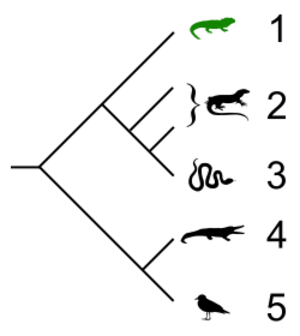 "Lizards" are paraphyletic. Branch lengths do not indicate divergence times.