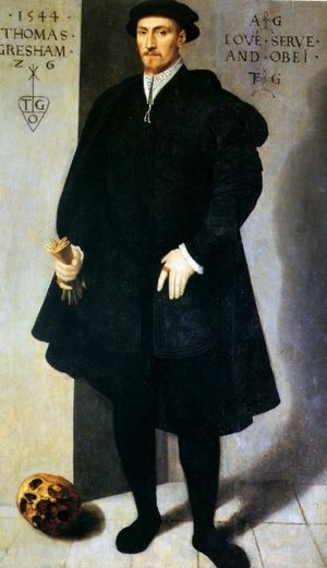 السير توماس گرِشام Thomas Gresham تاجر ومصرفي إنجليزي، وُلِدَ في لندن وتوفي فيها. درّس في كليتي غونفيل Gonville وكايوس Caius في كمبردج وتولى مناصب حكومية عدة، من أهمها أنه كان ممثلاً تجارياً للملك إدوارد السادس في أنفرس Anvers الذي عينه لاحقاً لإدارة ديون التاج، وهو منصب مماثل لوزارة المالية.