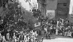 - 16 مارس: استمرت المواصلات معطلة، وكانت الأحياء الشعبية منها حي الحسين والسيدة زينب باب الشعرية والجمالية تشهد تظاهرات قوية. أقيمت الحواجز والمتاريس في هذه الأحياء لتعطيل سير المدرعات البريطانية، وحفر الثوار خنادق عميقة بالشوارع.[38] أُقيمت مظاهرة كبرى من السيدات في هذا اليوم، وكان أعدادهن تتجاوزالـ 300، وقدمن احتجاجًا مكتوبًا إلى معتمدي الدول(السفراء حاليًا). كان منهم صفية زغلول زوجة سعد زغلول.[39]