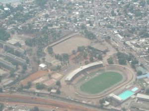 حرم جامعة جمال عبد الناصر إلى اليسار. وإلى اليمين استاد 28 سبتمبر في كوناكري 2004.