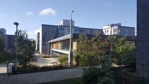 Following the extension of Keynes College in 2001, two new colleges opened on the Canterbury campus, Woolf College for postgraduates in 2008 and Turing College for undergraduates in 2015. Several other new buildings were also added, including the Jarman School of Arts Building in 2009, the Colyer-Fergusson Music Building, a performing arts space, in 2012, and the Sibson building, housing maths and the business school, in 2017. A major £27m project to extend and refurbish the Templeman Library began in 2013, was completed in 2017 and formally opened in 2018.[30] Additional accommodation was provided for students at the Medway Campus with the completion of Liberty Quays in 2009.[31]