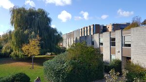The university was envisaged as being a collegiate establishment, with most students living in one of the colleges on campus, and as specialising in inter-disciplinary studies in all fields.[18] Over the years, changes in government policy and other changing demands have largely destroyed this original concept, leading to the present state, which is nearer the norm for a British university. However, the four original colleges – Darwin, Eliot, Keynes and Rutherford – remain, together with the newer Woolf and Turing colleges.[19]