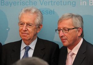 يونكر مع رئيس الوزراء الإيطالي ماريو مونتي في 27 يونيو 2012