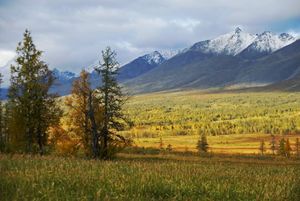 The landscapes of the Urals vary with both latitude and longitude and are dominated by forests and steppes. The southern area of the Mughalzhar Hills is a semidesert. Steppes lie mostly in the southern and especially south-eastern Urals. Meadow steppes have developed on the lower parts of mountain slopes and are covered with zigzag and mountain clovers, Serratula gmelinii, dropwort, meadow-grass and Bromus inermis, reaching the height of 60–80 سنتيمتر (24–31 in). Much of the land is cultivated. To the south, the meadow steppes become more sparse, dry and low. The steep gravelly slopes of the mountains and hills of the eastern slopes of the Southern Urals are mostly covered with rocky steppes. River valleys contain willow, poplar and caragana shrubs.[3]