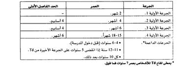 جدول التلقيح الروتيني بلقاح Td (الأشخاص غير الملقحين بعمر 7 سنوات فما فوق)
