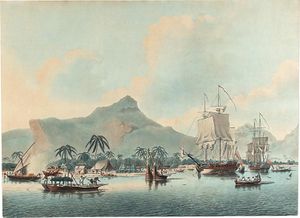 HMS ريزوليوشن وديسكڤري في هواهين، تحت قيادة جيمس كوك.