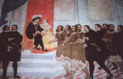 ألونسو فرناندز ده لوگو يقدم ملوك تنريفه المحليين الأسرى إلى فرديناند وإيزابلا